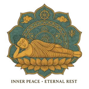 This design portrays Lord Buddha in a reclining posture, symbolic of his final moments of earthly life—a pose known as Parinirvana, representing ultimate peace, detachment, and enlightenment.