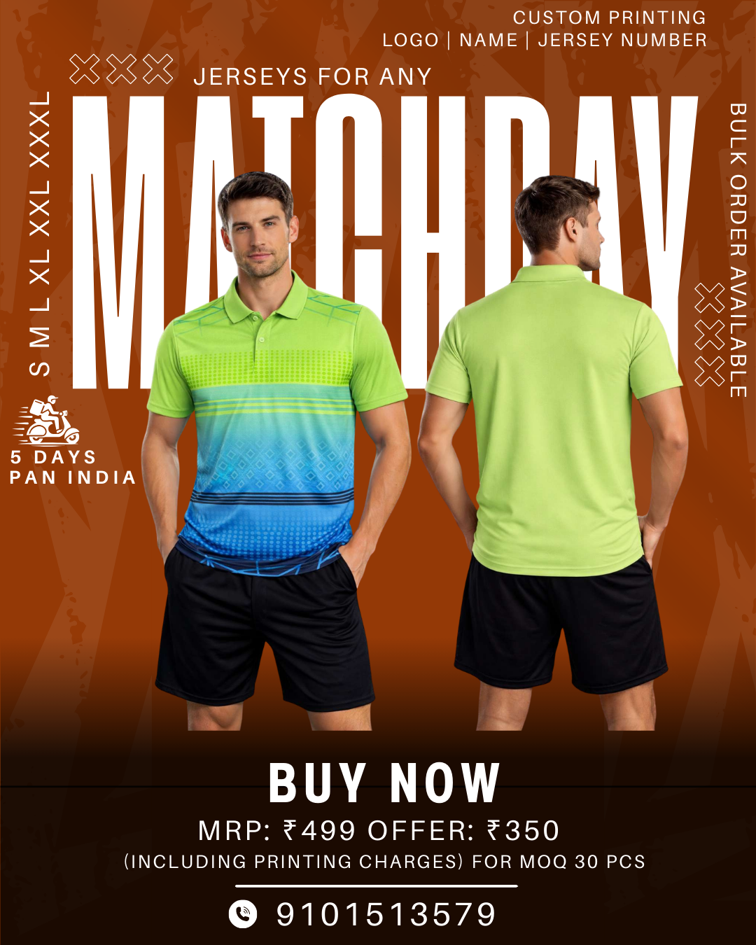 1) Custom Printing of Logo, Name and Jersey Number